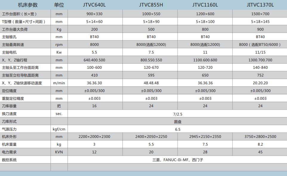 JTVC640L 855H 1160L 1370L高速立式加(jia)工中心